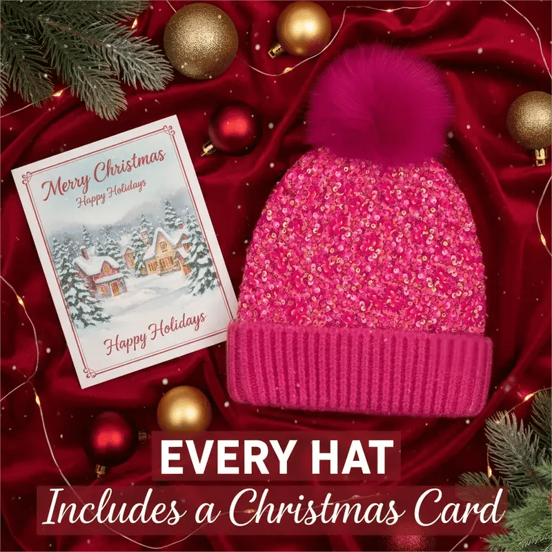 Turn winter grays into shimmering days with the Sequin Pom Beanie — the perfect fusion of soft warmth and eye-catching glam. Designed to keep you snug while adding a festive touch to any outfit, this beanie features an all-over sequin texture that catches the light and compliments your winter glow. Whether you're running errands or heading out for a festive evening, this beanie is your cold-weather statement piece.